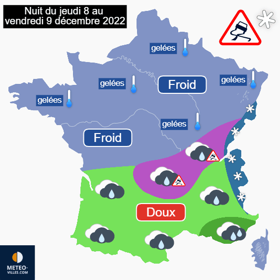 Risque de verglas et de neige dans la nuit du jeudi 8 au vendredi 9 décembre 2022 - Météo Villes