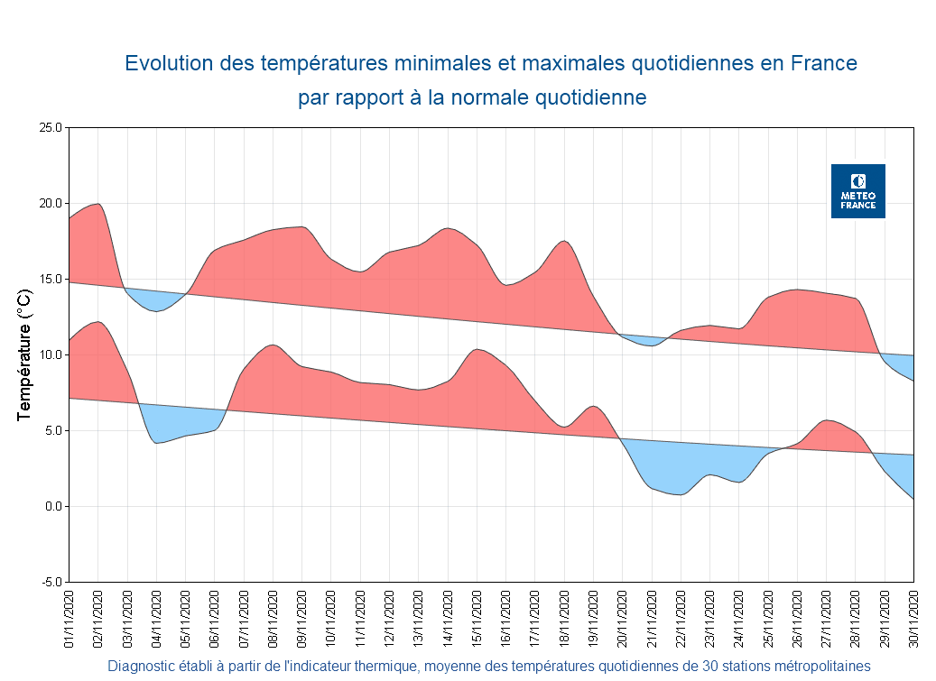 Au total, ce mois de novembre a été marqué par 22 jours avec températures supérieures aux moyennes, contre 8 journées « fraîches ».