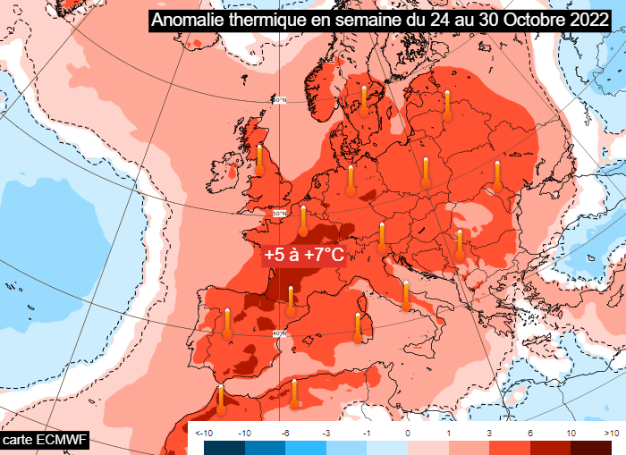 Anomalie thermique sur la semaine du lundi 24 au dimanche 30 octobre 2022 – via ECMWF