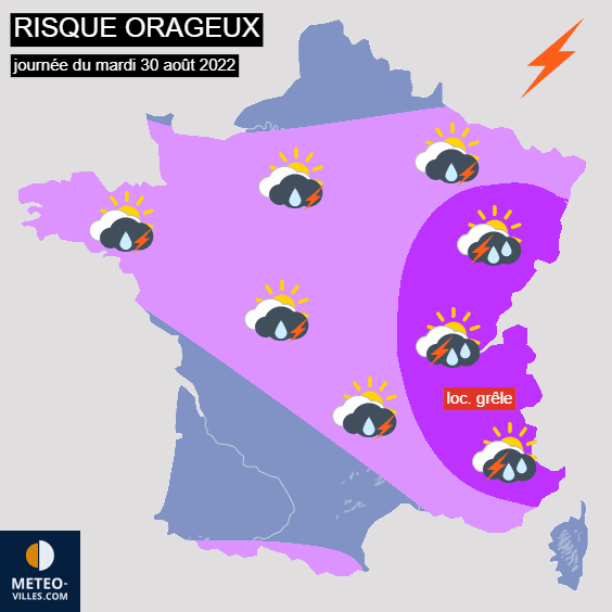 Carte du risque orageux en journée du mardi 30 août 2022 - Météo Villes