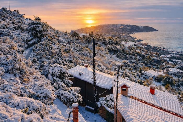 La neige a été observée de façon abondante jusqu'au littoral méditerranéen, ici à Roquebrune-Cap-Martin dans les Alpes-Maritimes à la mi-janvier 1963 – Archives Météo-Villes
