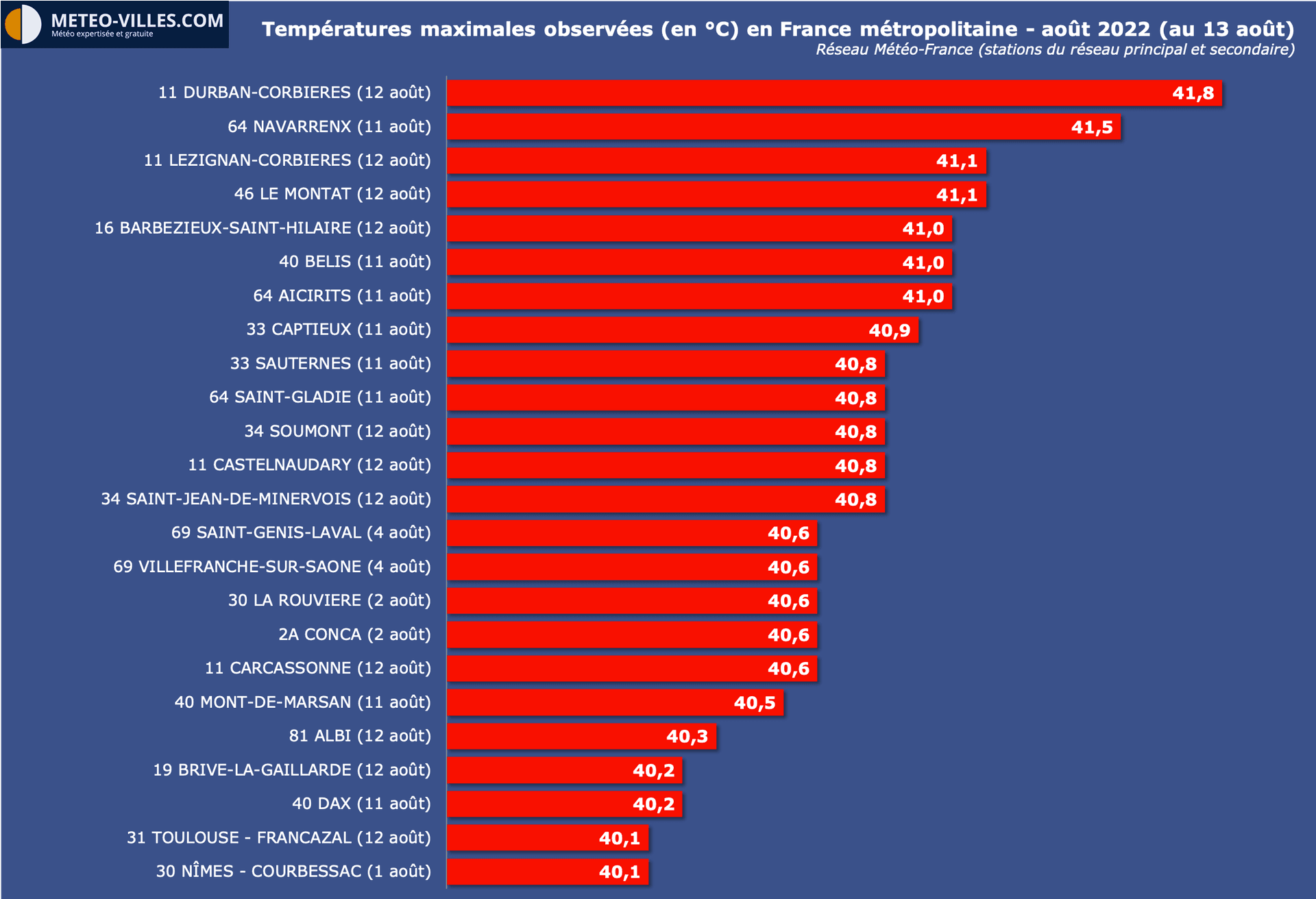 Record absolu de température maximale battu les 11 et 12 août 2022 - station mesurant depuis au moins 30 ans - Météo-Villes