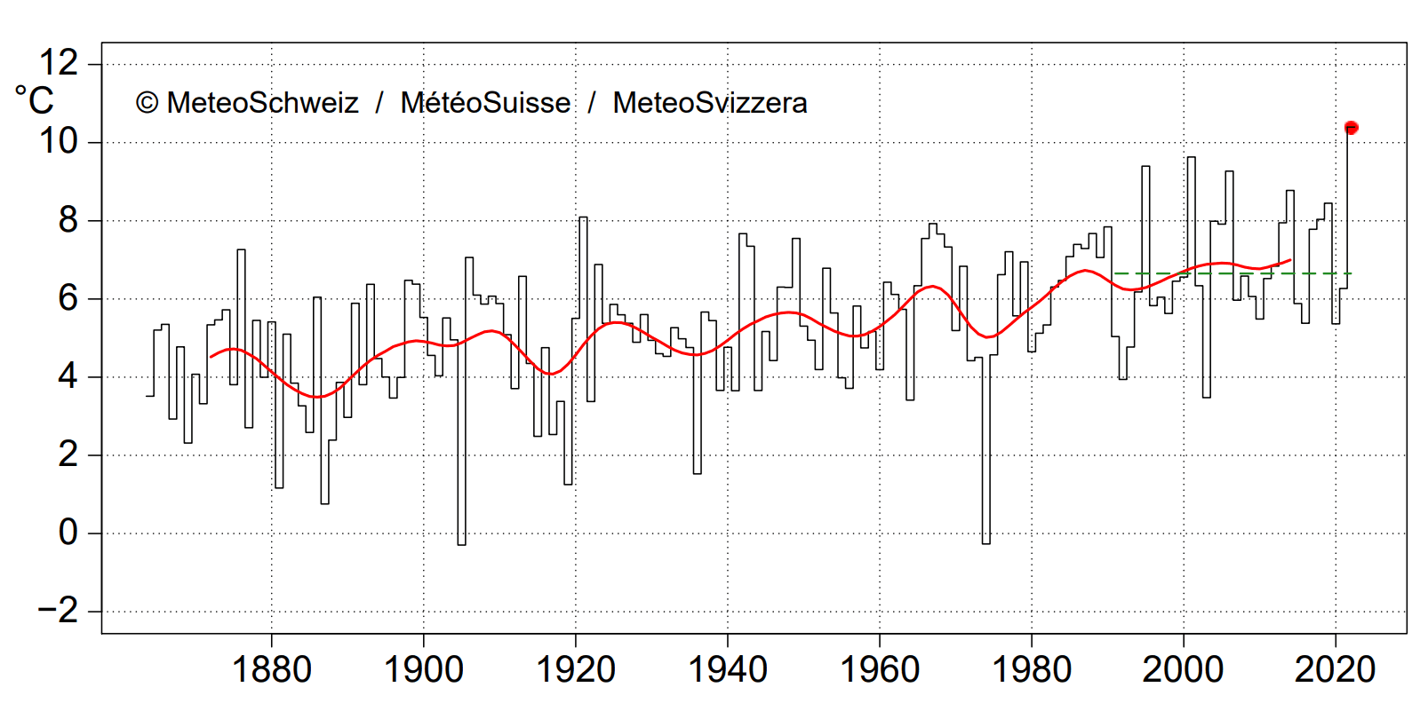 Température moyenne en octobre en Suisse depuis 1864 - Météo-Suisse