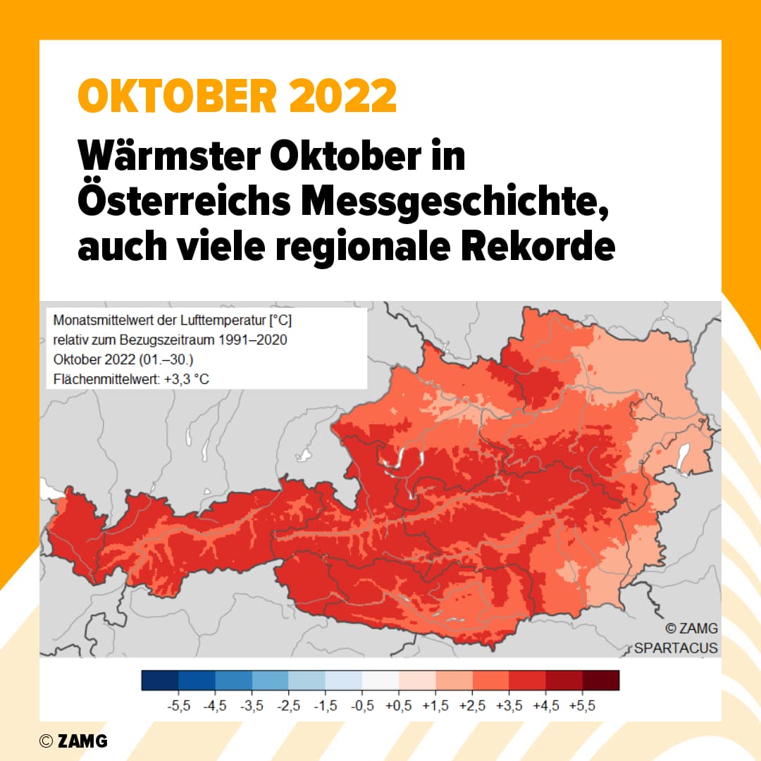 Anomalie de température en octobre 2022 en Autriche (par rapport à la moyenne 1991-2020) - ZAMG_AT