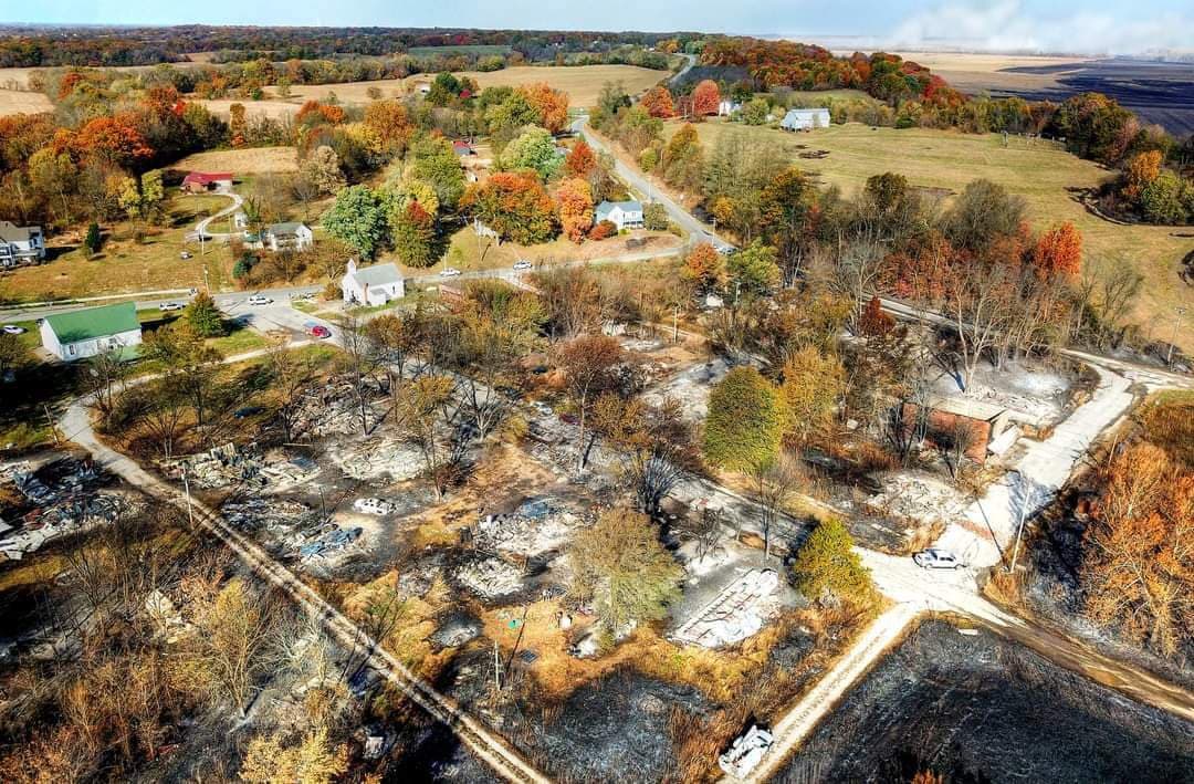 Une partie de la ville de Wooldridge (Missouri) ravagée par un incendie - 25 octobre 2022 - Twitter @MccarverDawn