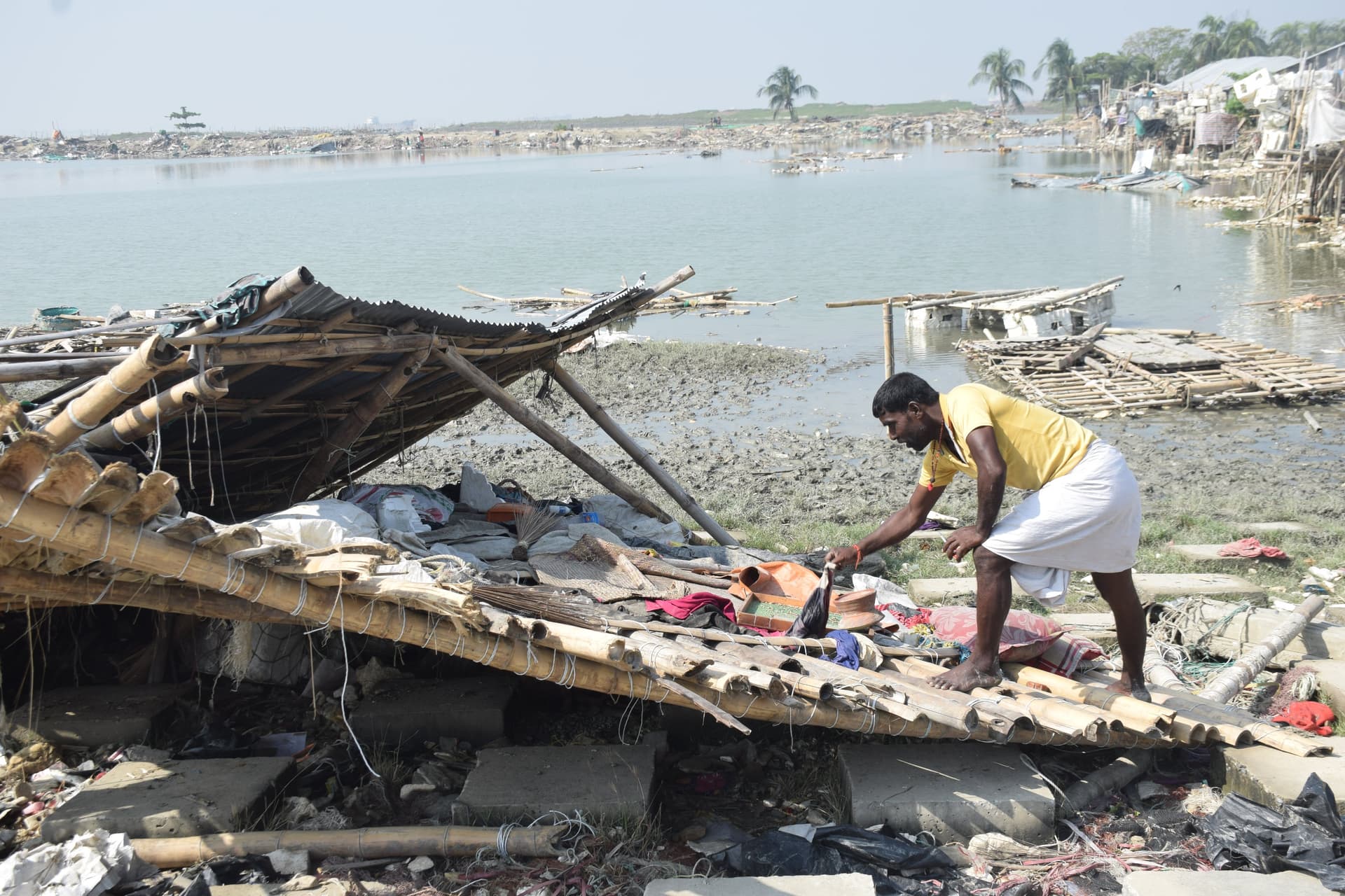 Personne sans abri après le passage de la tempête Sitrang, dans le village de pêcheurs de Patenga (Bengladesh) - 31 octobre 2022 - Twitter @ri_montu