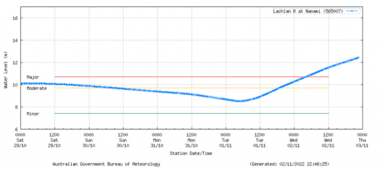 Évolution du niveau de la rivière Lachlan à Nanami (Nouvelle-Galles-du-Sud) au 03 novembre 2022 - Australian Government Bureau of Meteorology