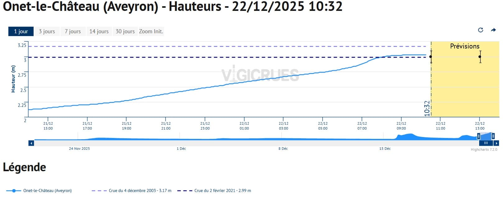 Évolution du niveau de l'Aveyron à la station d'Onet-le-Château (12) – Vigicrues