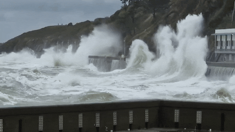 La houle était particulièrement importante en Manche et sur l'Atlantique. À marée haute, quelques phénomènes de submersion ont été observés sur les littoraux les plus exposés. Ce fut par exemple le cas à Granville dans la Manche, comme le montrent les images ci-dessous. Au large des côtes bretonnes, une bouée située au large de Belle-Île a mesuré une houle atteignant jusqu'à 14,4 mètres !