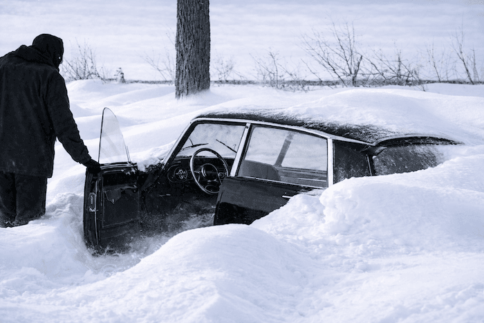 La DS ensevelie par la neige et dans laquelle Jeanne Moreau et Louis Malle ont été pris au piège durant une nuit, transis de froid - archives meteo-paris.com