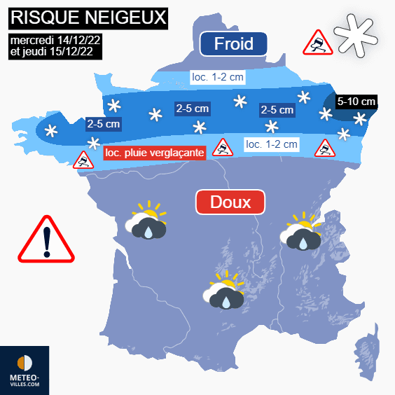 Cumuls de neige prévus les mercredi 14 et jeudi 15 décembre 2022 - Météo Villes