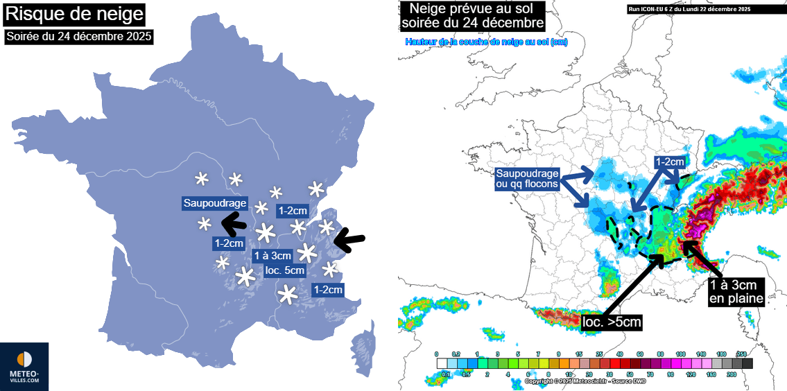 Risque de neige sur la France pour la soirée du 24 décembre – Météo-Villes