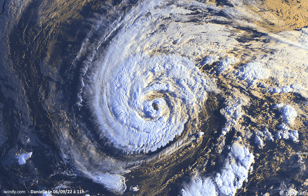 Image satellite de l'ouragan Danielle ce mardi 6 septembre 2022 - via windy.com