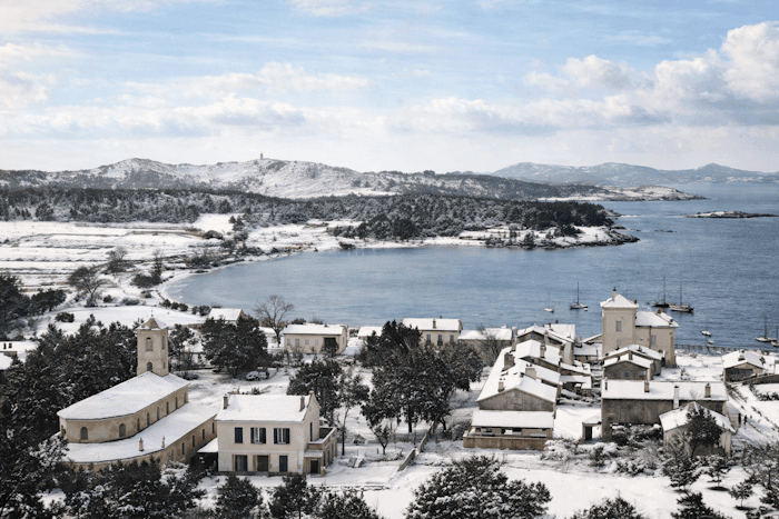La neige ne se contente pas du littoral varois. Elle s'invite également sur les îles du département ! Ainsi, l'île de Porquerolles se retrouve sous plusieurs centimètres de neige en cette fin février 1909. La photo ci-dessous - qui est un cliché d'époque ayant été amélioré et colorisé - en témoigne. De nos jours, voir de la neige recouvrir les îles varoises est devenu particulièrement rare, y compris au cœur de l'hiver.
