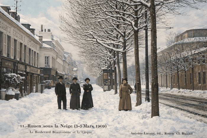 Épaisse couche de neige à Rouen (76) début mars 1909 - Chronique Météo Villes