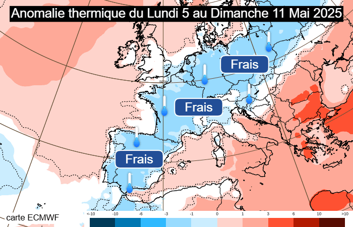 Anomalie thermique en semaine du lundi 5 au dimanche 11 mai 2025 - ECMWF