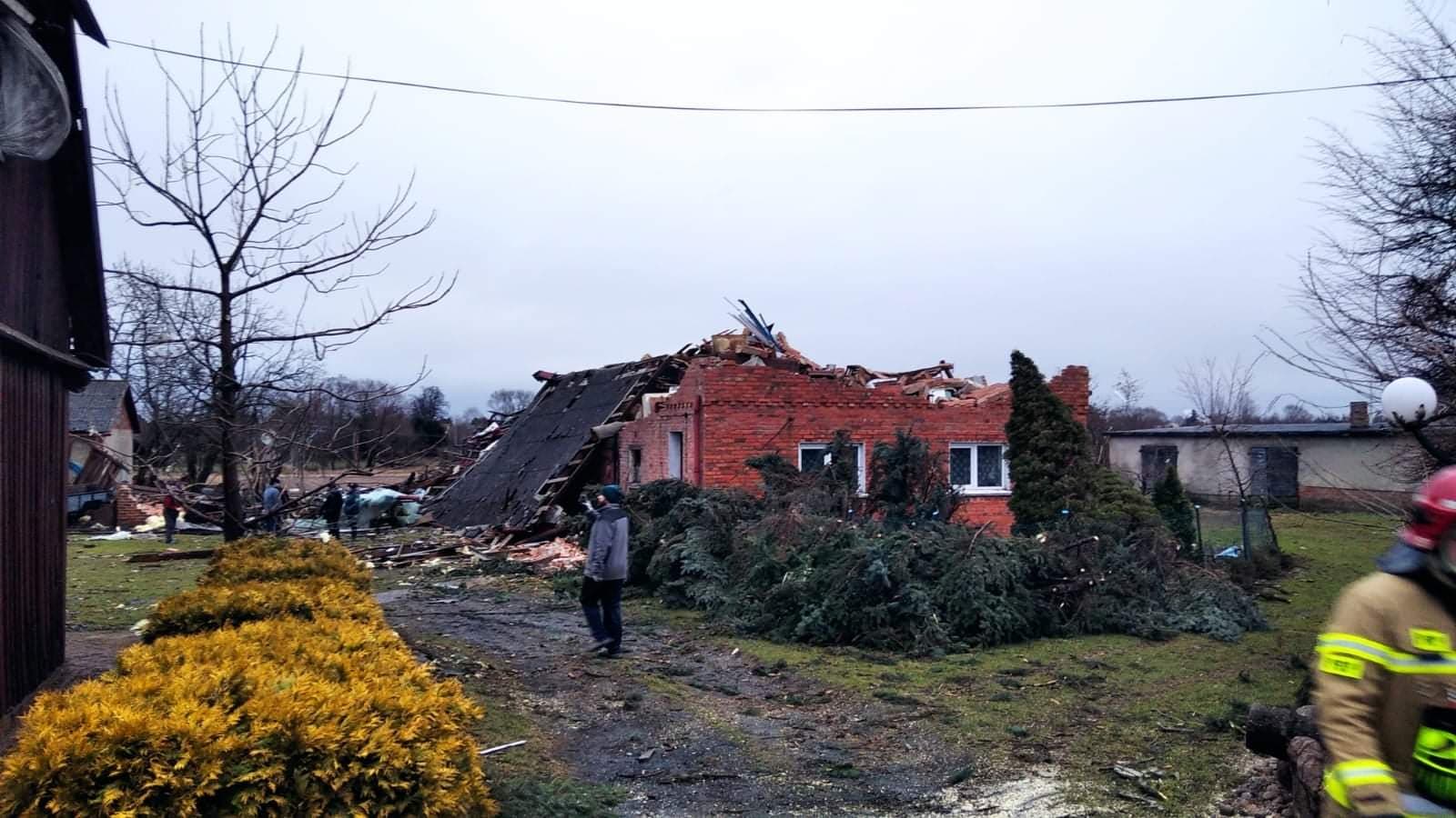 Dégâts après le passage d'une tornade près de Błaszki (Pologne) le 17 février 2022 – via Unwetter-Freaks