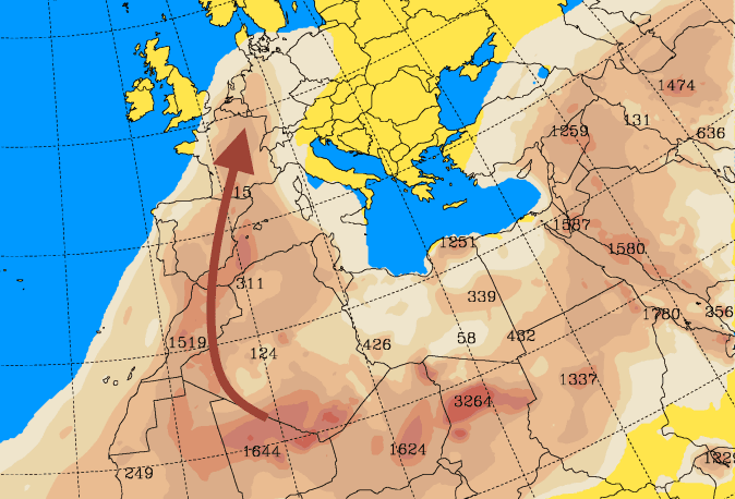Ce n'est donc clairement pas le moment de laver votre véhicule. Il faudra attendre au moins le début de la semaine prochaine pour que l'atmosphère soit véritablement débarrassée de ces poussières de sable. Cependant, la fin de présence de ces poussières reste encore assez floue à l'heure actuelle (car le flux de sud-ouest semble vouloir s'installer durablement)...