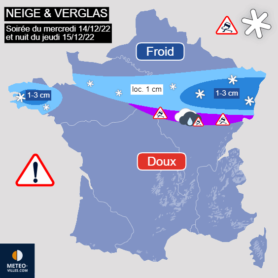 Neige & pluie verglaçante prévues en soirée du mercredi 14 décembre 2022 et nuit suivante - Météo Villes