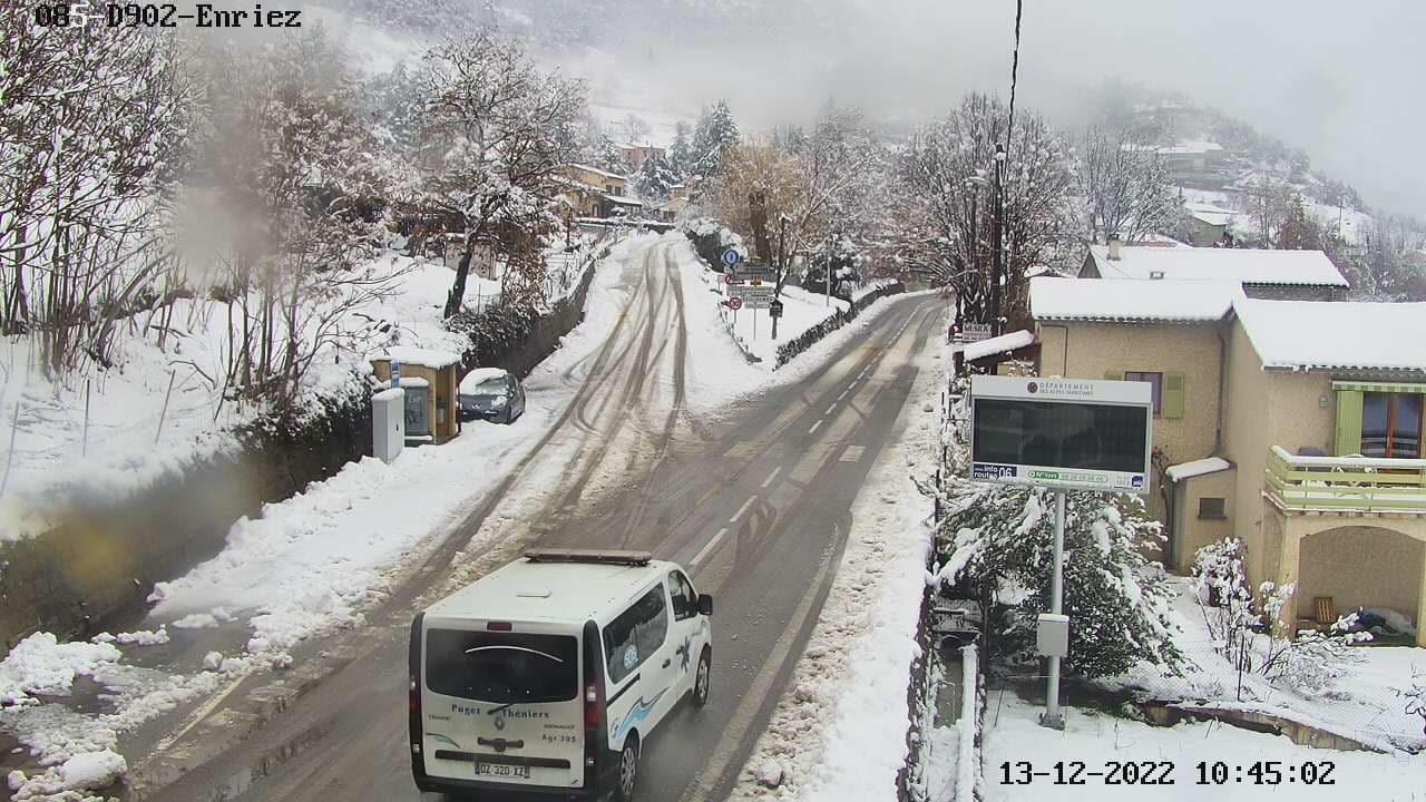 Neige à Enriez (06) en matinée du mardi 13 décembre 2022 – webcam Alpes-Maritimes