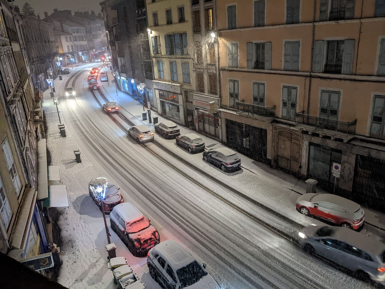 Le Puy-en-Velay (43) sous la neige en soirée du lundi 12 décembre 2022 - via L'Eveil de la Haute-Loire