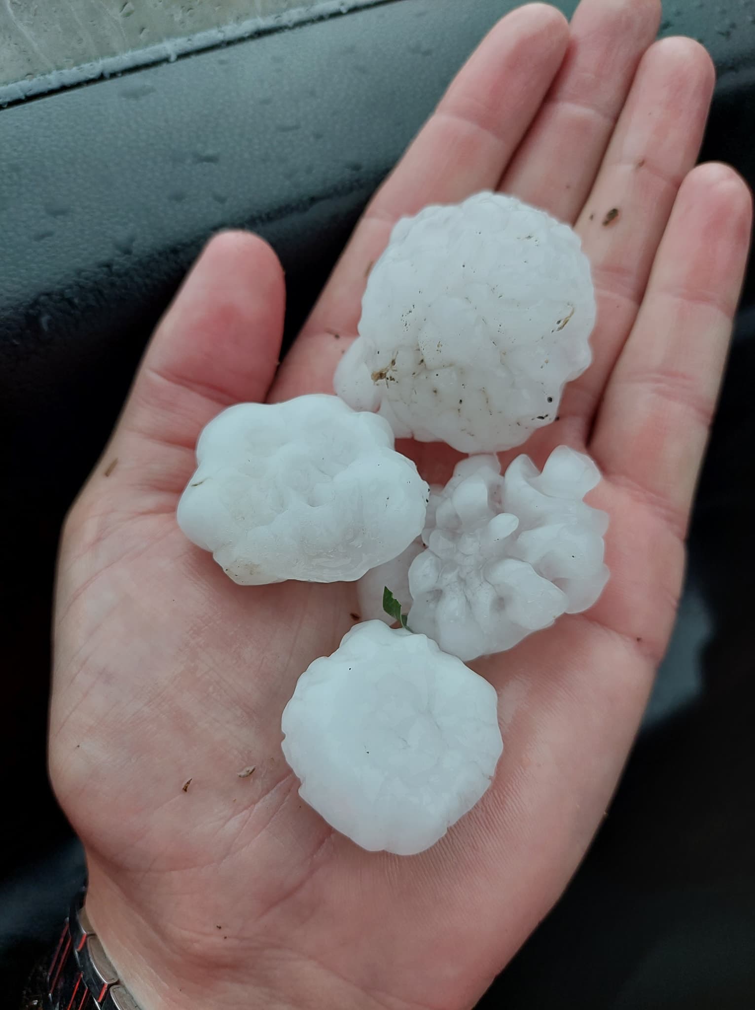 Grêlons d'important diamètre près de Nages-et-Solorgues (30) - Photographie : Amandine Huber via Météo-Languedoc