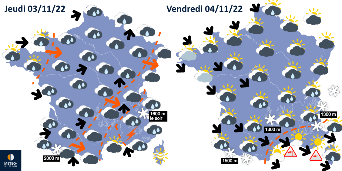 Prévisions pour les journées du jeudi 3 et du vendredi 4 novembre 2022 – Météo Villes