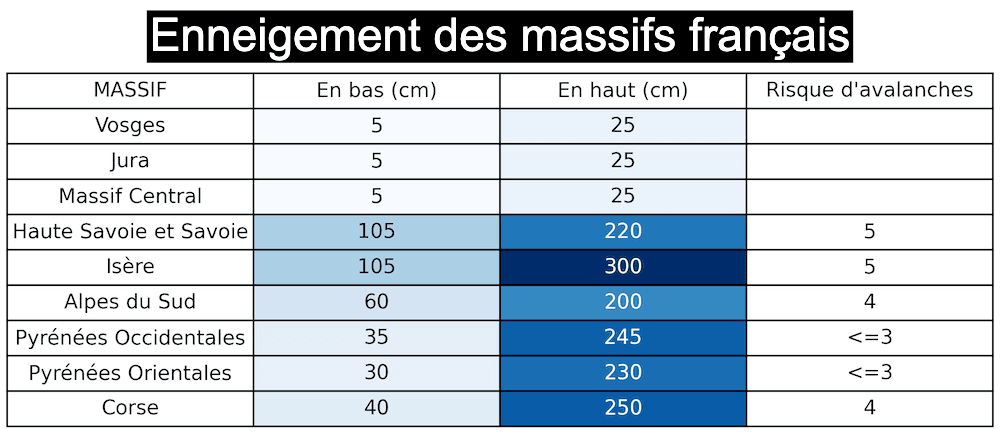 Les quantités sont en général comprises entre 200 et 300 cm en haut des pistes, là aussi des valeurs particulièrement élevées.