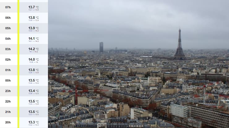 • 13,2°C à Paris-Montsouris (75) & Tours (37)