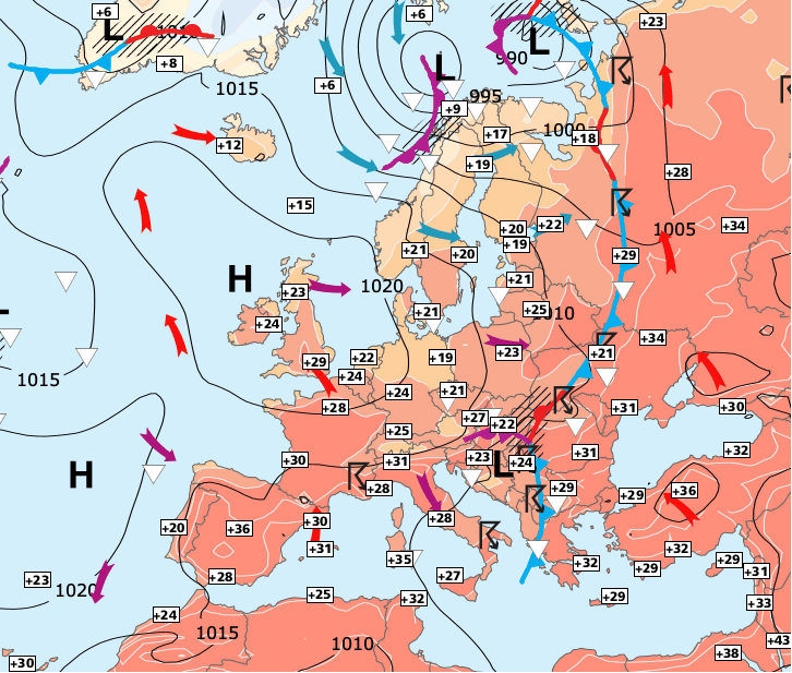 Carte de prévisions d'europe du Lundi 19 juillet 2021