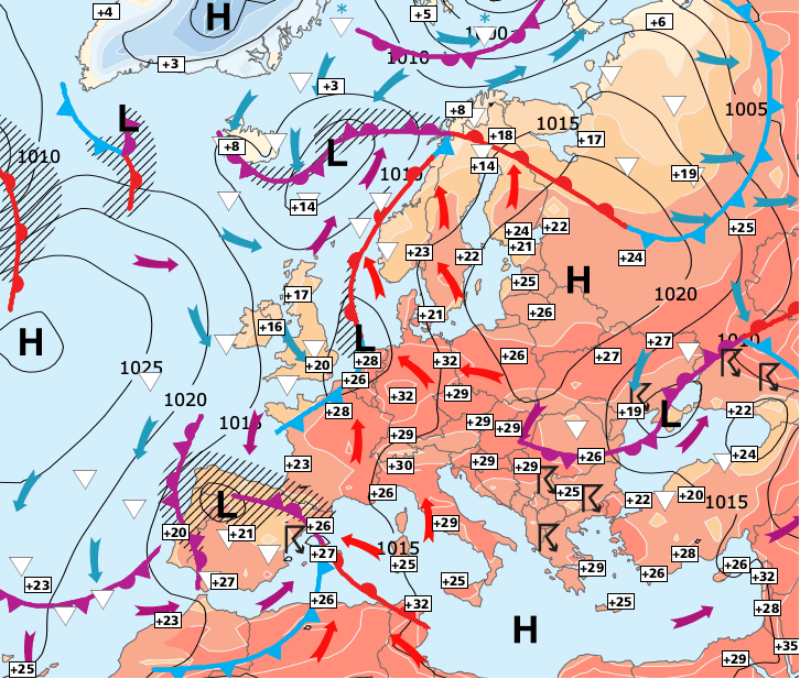 Noms des dépressions et anticyclones prévus pour vendredi 18 juin 2021 à midi (Berlin)