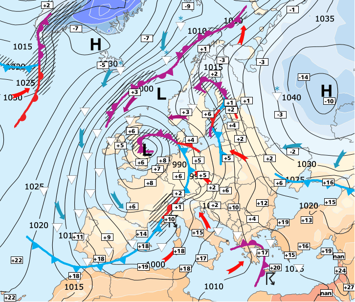 + En liaison avec la proximité de cette dépression, l'instabilité sera également beaucoup plus marquée près de l'Atlantique avec des averses parfois fortes.