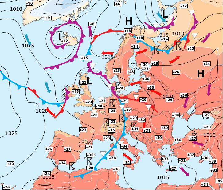Carte de prévisions d'europe du Lundi 26 juillet 2021
