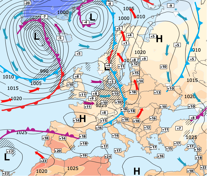 + L’air beaucoup plus froid venu du nord gagnera du terrain par la suite, et le week-end pascal devrait être très frais souvent nuageux et humide...