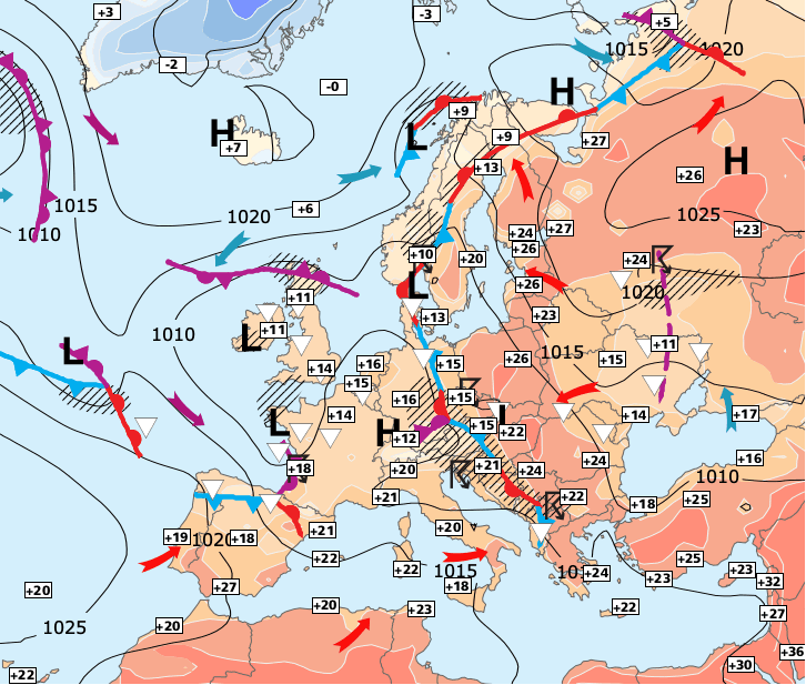 + L’anticyclone des Açores est retourné dans son nid (les Açores) et ne protège plus la France de ce courant perturbé océanique.